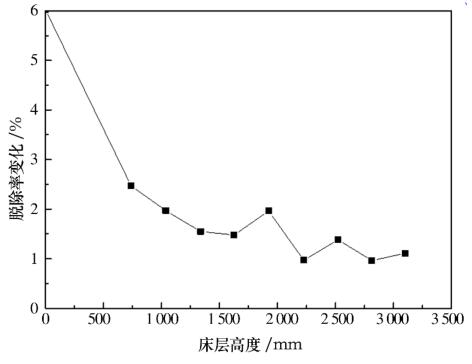在煙氣含水蒸汽12.5%、氨水濃度飽和的條件下,采用滿足指標(biāo)要求的活性炭,當(dāng)床層高度超過3m時,NOx脫除率超過80%,如圖4所示。