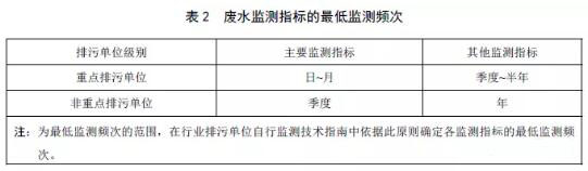 注:為最低監(jiān)測頻次的范圍,分行業(yè)排污單位自行監(jiān)測技術(shù)指南中依據(jù)此原則確定各監(jiān)測指標(biāo)的最低監(jiān)測頻次。