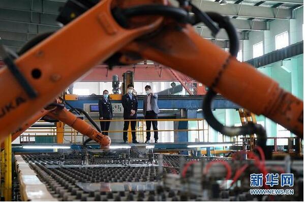4月23日,河北省沙河市環(huán)境保護(hù)局執(zhí)法人員在河北鑫利玻璃有限公司內(nèi)向企業(yè)負(fù)責(zé)人了解企業(yè)生產(chǎn)情況。2019年起,有“中國玻璃城”美譽的河北沙河市啟動了“煙羽消白”工程,先后投入20億元對在產(chǎn)玻璃生產(chǎn)線實施超低排放改造,并結(jié)合提升廠區(qū)環(huán)境、優(yōu)化產(chǎn)能等措施,削減粉塵、二氧化硫、氮氧化物等污染物排放,推進(jìn)大氣污染治理。 新華社記者 牟宇 攝