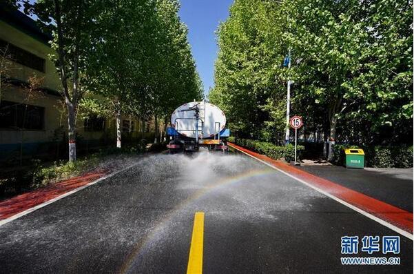 4月23日,灑水車在位于河北省沙河市的河北鑫利玻璃有限公司廠區(qū)內(nèi)灑水防塵。 2019年起,有“中國玻璃城”美譽的河北沙河市啟動了“煙羽消白”工程,先后投入20億元對在產(chǎn)玻璃生產(chǎn)線實施超低排放改造,并結(jié)合提升廠區(qū)環(huán)境、優(yōu)化產(chǎn)能等措施,削減粉塵、二氧化硫、氮氧化物等污染物排放,推進(jìn)大氣污染治理。新華社記者 牟宇 攝
