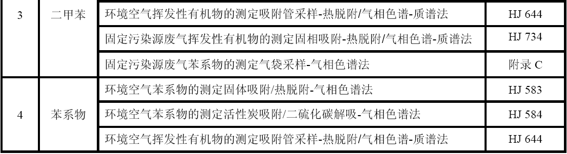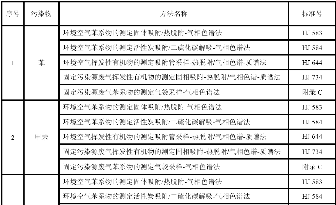 GB 16297 大氣污染物綜合排放標(biāo)準(zhǔn) GB 24409 汽車涂料中有害物質(zhì)限量 GB/T 15089 機(jī)動(dòng)車輛及掛車分類 GB/T15432 環(huán)境空氣總懸浮顆粒物的測(cè)定重量法 GB/T 16157 固定污染源排氣中顆粒物測(cè)定與氣態(tài)污染物采樣方法 HJ 583 環(huán)境空氣苯系物的測(cè)定固體吸附/熱脫附-氣相色譜法 HJ 584 環(huán)境空氣苯系物的測(cè)定活性炭吸附/二硫化碳解吸-氣相色譜法 HJ 644 環(huán)境空氣揮發(fā)性有機(jī)物的測(cè)定吸附管采樣-熱脫附/氣相色譜-質(zhì)譜法 HJ 732 固定污染源廢氣揮發(fā)性有機(jī)物的采樣氣袋法 HJ 734 固定污染源廢氣揮發(fā)性有機(jī)物的測(cè)定固相吸附-熱脫附/氣相色譜-質(zhì)譜法 HJ/T 38 固定污染源排氣中非甲烷總烴的測(cè)定氣相色譜法 HJ/T 55 大氣污染物無(wú)組織排放監(jiān)測(cè)技術(shù)導(dǎo)則 HJ/T 75 固定污染源煙氣排放連續(xù)監(jiān)測(cè)技術(shù)規(guī)范(試行) HJ/T 194 環(huán)境空氣質(zhì)量手工監(jiān)測(cè)技術(shù)規(guī)范 HJ/T 293 清潔生產(chǎn)標(biāo)準(zhǔn)汽車制造業(yè)(涂裝) HJ/T 397 固定源廢氣監(jiān)測(cè)技術(shù)規(guī)范 《建設(shè)項(xiàng)目環(huán)境保護(hù)設(shè)施竣工驗(yàn)收監(jiān)測(cè)技術(shù)要求(試行)》(環(huán)發(fā)(2000)38號(hào))
