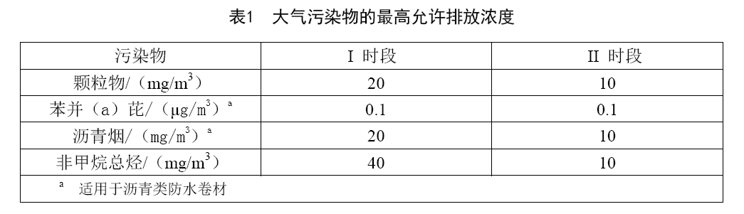 防水卷材行業大氣污染物排放標準