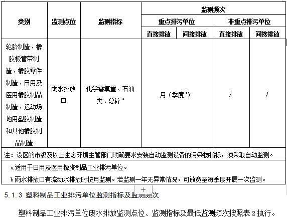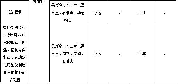 5.1.2 橡膠制品工業(yè)排污單位監(jiān)測指標(biāo)及監(jiān)測頻次