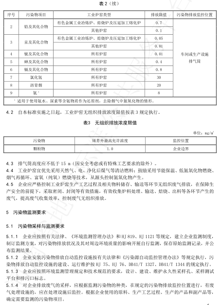 氮氧化物(以NO2計)排放極限:耐火材料工業干燥及燒成窯100mg/m3;剛玉類工業熔煉爐、熔化爐、豎窯:300mg/m3。
