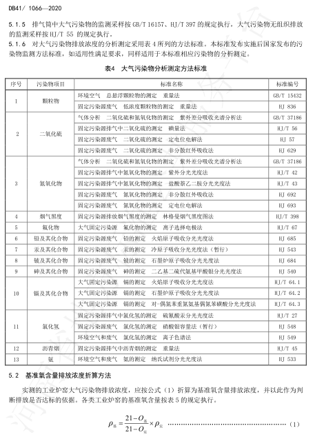 基準氧含量(O2):耐火材料工業燒成窯:18/%;剛玉類工業熔煉爐、以電能轉換產生熱量的各類爐窯:按實測濃度計;爐窯啟停階段(氧含量不低于19%的情形):按實測濃度計等。