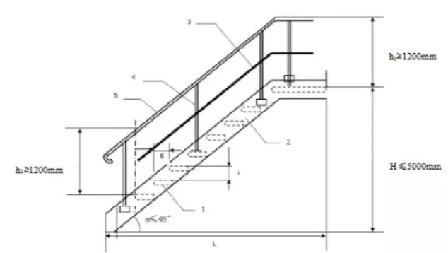 2、 監(jiān)測平臺(tái)與墜落高度基準(zhǔn)面之間距離超過2 m時(shí),不應(yīng)使用直梯通往監(jiān)測平臺(tái),應(yīng)安裝固定式鋼斜梯、轉(zhuǎn)梯或升降梯到達(dá)監(jiān)測平臺(tái)。梯子無障礙寬度≥0.9 m,梯子傾角不超過45度。每段斜梯或轉(zhuǎn)梯的最大垂直高度不超過5 m,否則應(yīng)設(shè)置緩沖平臺(tái),緩沖平臺(tái)的技術(shù)要求同監(jiān)測平臺(tái)。