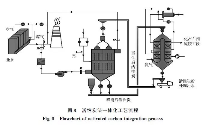 活性炭法具有系統(tǒng)占地面積小,所用物資均可市場采購,特別是該系統(tǒng)充分利用了焦化系統(tǒng)的各項資源,沒有新的污染物產(chǎn)生的優(yōu)點。但該工藝存在大規(guī)模改造應(yīng)用的經(jīng)濟(jì)性較差問題。