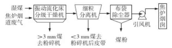 煤調(diào)濕是將煉焦煤在裝爐前除去一部分水分,保持裝爐煤水分穩(wěn)定在6%左右,然后裝爐煉焦。日本、俄羅斯等國家普遍使用,在我國煤調(diào)濕已成為焦化行業(yè)重點(diǎn)開發(fā)并積極推廣的技術(shù)。利用焦?fàn)t煙道廢氣煤調(diào)濕工藝不但可以節(jié)省能源,減少廢氣、廢水、廢熱的排放,而且可以提高裝爐煤堆密度及煉焦初期升溫速度、縮短結(jié)焦時(shí)間,從而實(shí)現(xiàn)節(jié)能降耗的目的。